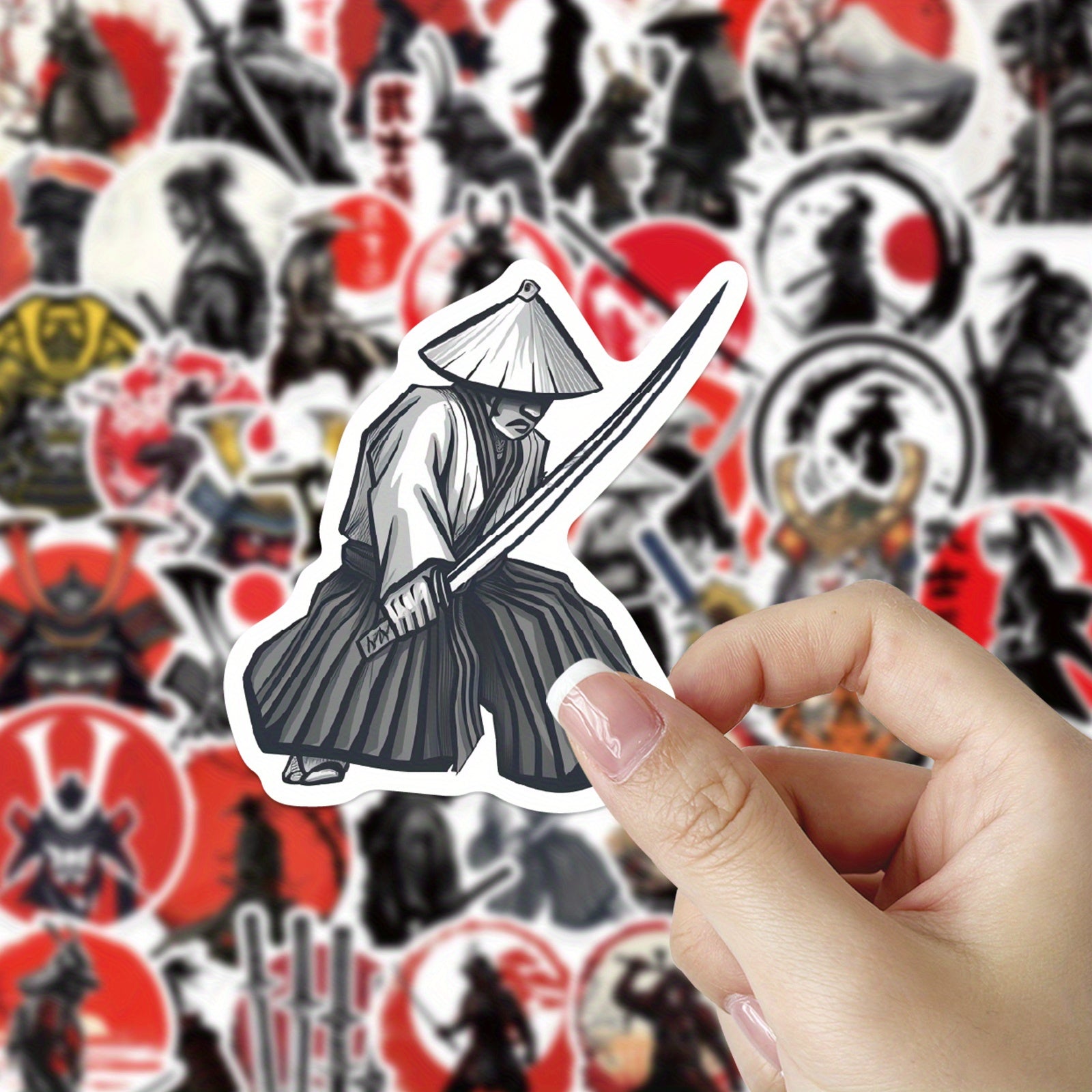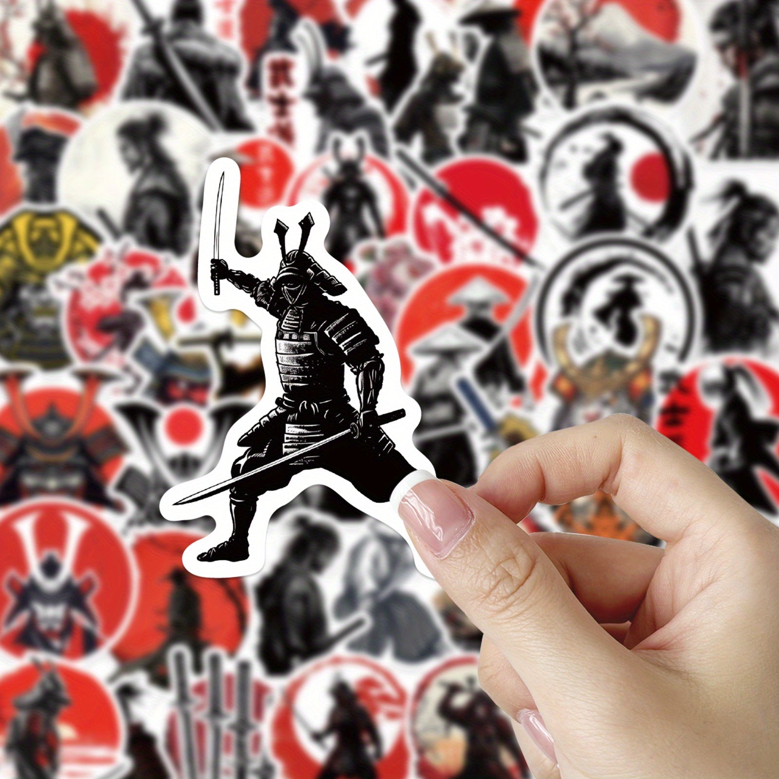 50 PCS Samurai Warrior Stickers – Japanese Samurai and Red Sun Flag Designs with Matte Finish
